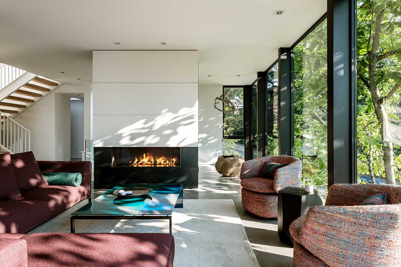 Longing to tear down the original home, clients requested a new, larger home in the same spot that evoked the same feelings as the one demolished. Taking on the task was Sandall Norrie Architects, in collaboration with Swivel Interiors, who designed the Modern Treehouse to live amongst the lush greenery while optimizing views of Lake Washington and Mt. Rainer. The new home is more modern and open with seamless connections to the outdoors. The results are a mid-century inspired design that leans towards minimalism, while still capturing the homeowner’s diverse tastes.